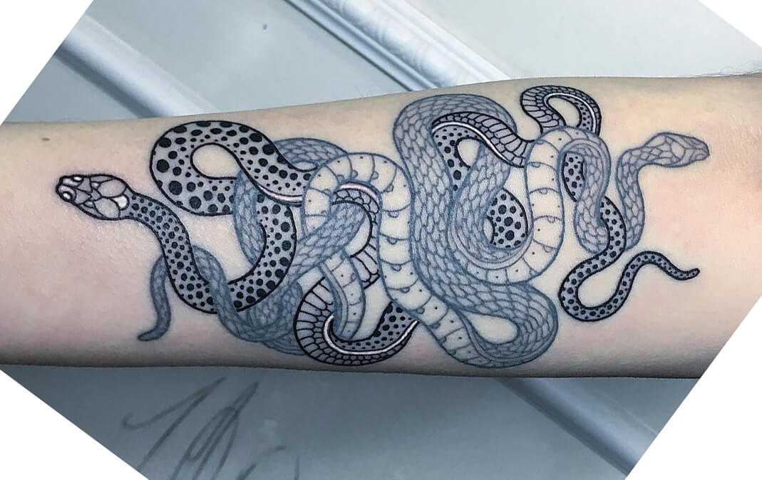 «Парные» змеи часто переплетаются на татуировках.